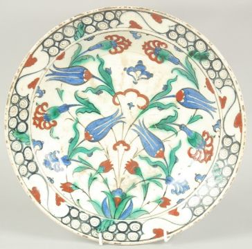 A VERY FINE 16TH CENTURY OTTOMAN TURKISH IZNIK DISH, 30cm diameter.