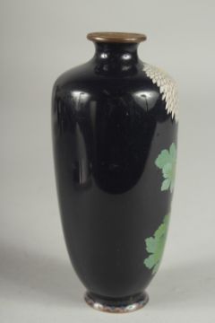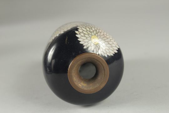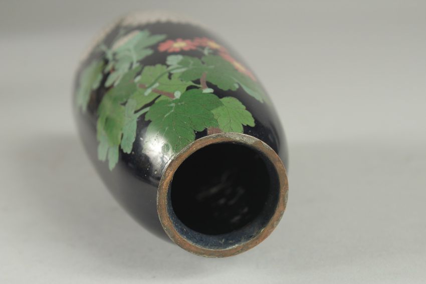A JAPANESE CLOISONNE VASE, decorated with flora, (lacking base), 15cm high.