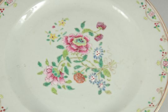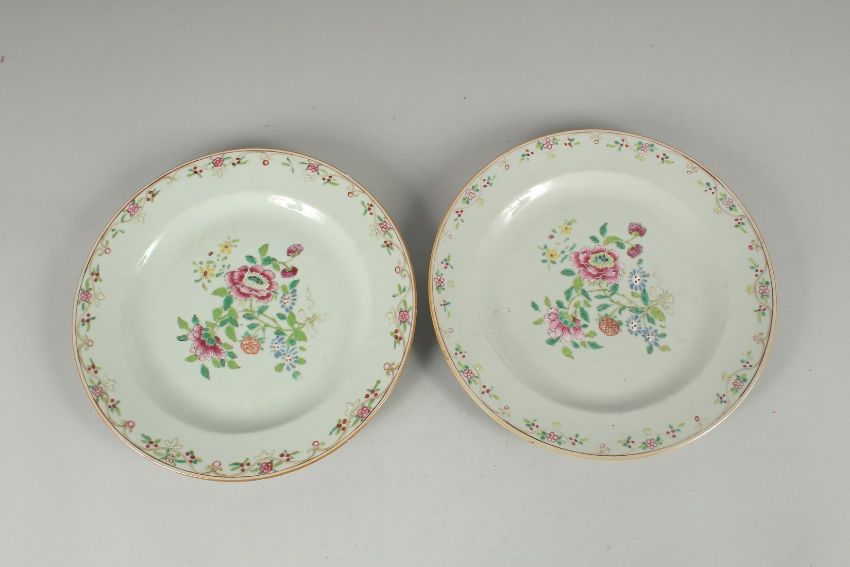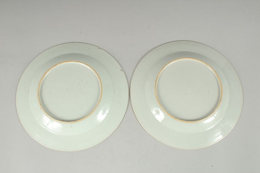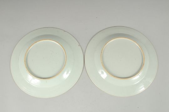 A PAIR OF 19TH CENTURY CHINESE FAMILLE ROSE PORCELAIN PLATES, 23cm diameter.