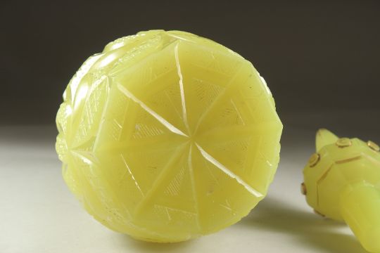 A 19TH CENTURY ISLAMIC, OTTOMAN MARKET, ENAMEL OVERLAID BOHEMIAN GLASS DECENTER AND STOPPER, 36cm high.