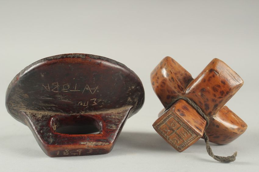 TWO 19TH CENTURY GREEK BREAD MOULDS, dated 1893.