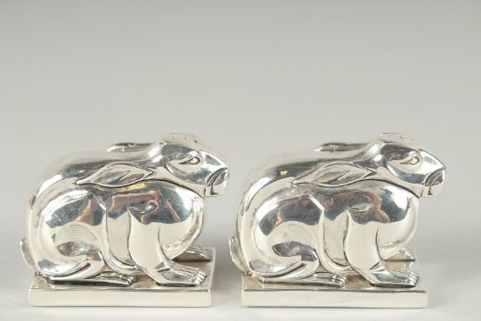 A PAIR OF DECO STYLE RABBIT SALT AND PEPPERS.