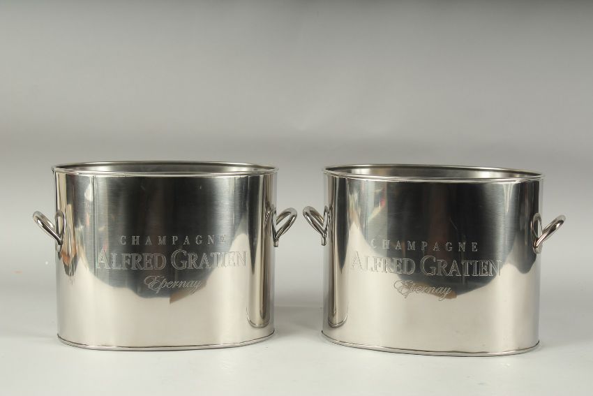 A PAIR OF ALFRED GRATIEN OVAL TWO HANDLED ICE BUCKETS.