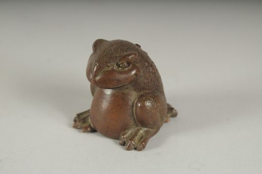 A LARGE JAPANESE BRONZE FROG. 2ins high.