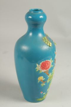 A CHINESE BLUE VASE with a stork in relief, impressed mark. 8ins high.