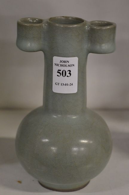 A Chinese celadon glazed small bottle vase.