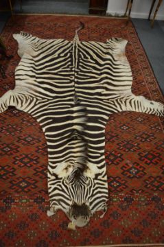 A zebra skin rug.