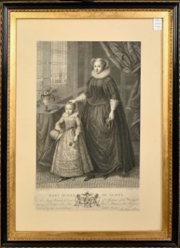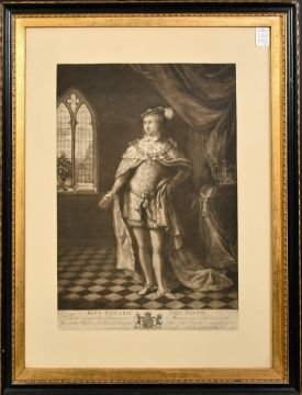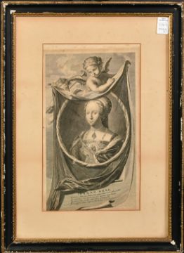 A group of three engravings of notables, along with two later historical prints, (5).