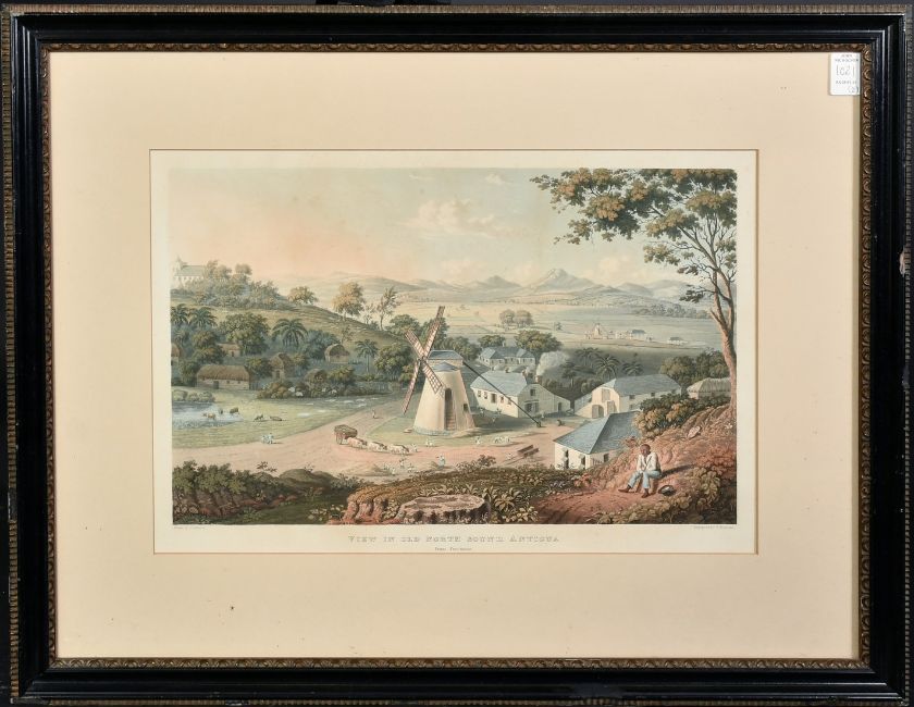 E Duncan after J. Johnson, a fine 19th Century hand coloured aquatint, 'View in Old North Sound, Antigua', 12" x 17.5" (30 x 44.5cm), along with a similar unattributed aquatint, 'View of Saint John's Harbour, Antigua', marked 'Proof', (2).