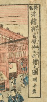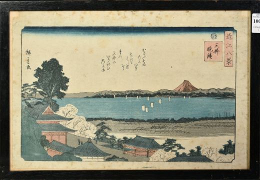 Hiroshige, a 19th Century Japanese woodblock print, along with another by Kuniyasu, each 10" x 15" (25 x 38cm), a/f, (2).