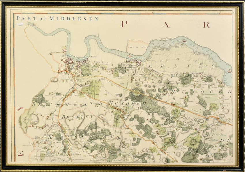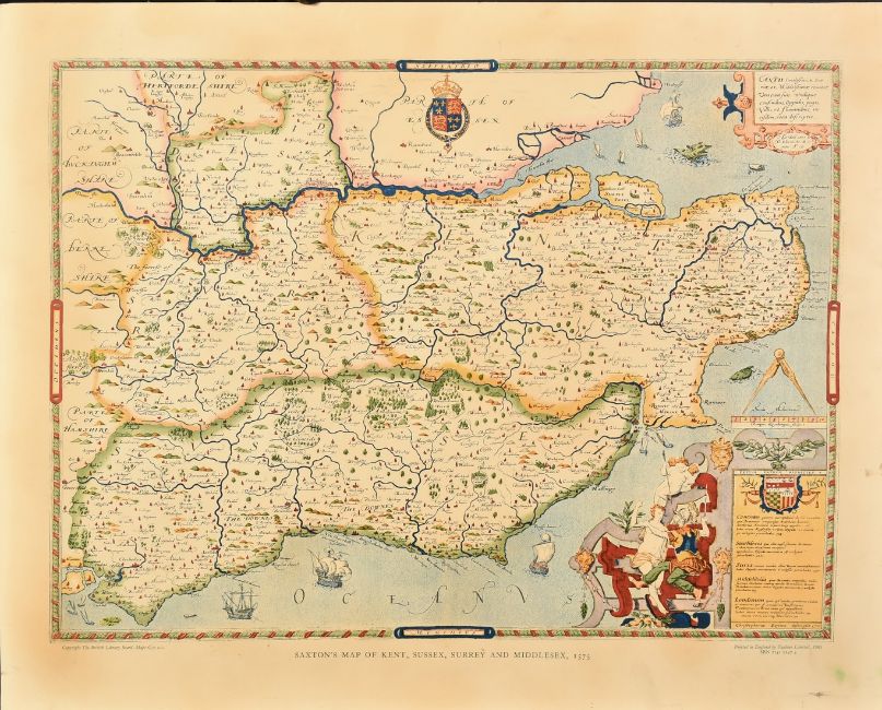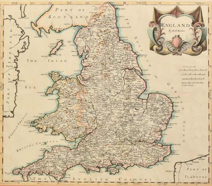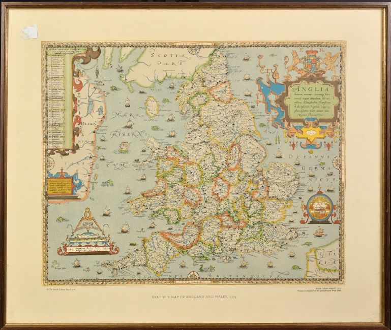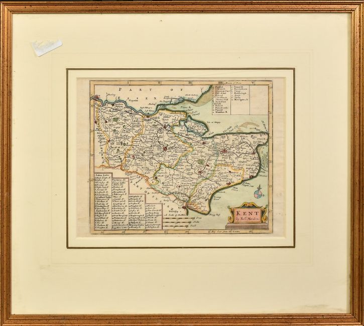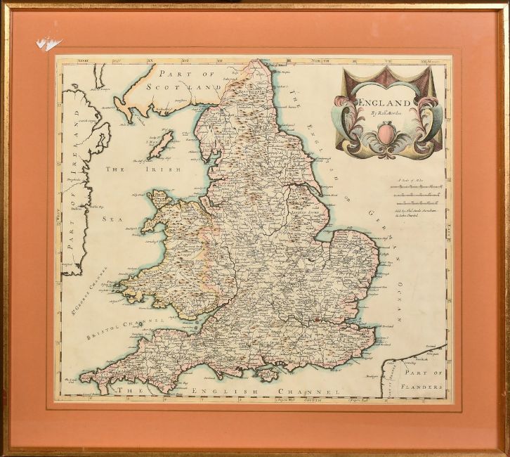 Robert Morden, 'England', a hand coloured map, 14.5" x 16.5" (37 x 42cm), along with a hand coloured map of Part of Middlesex, a Morden map of Kent, and four further reproduction maps, (7).