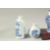 THREE CHINESE BLUE AND WHITE PORCELAIN SNUFF BOTTLES on a tiered wooden stand, together with a pair of miniature lidded jars and a small circular box, (x7 pieces total - including stand).