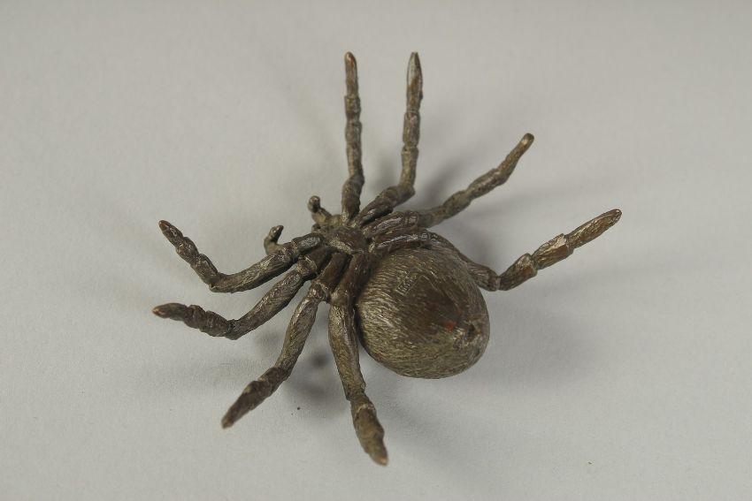 A JAPANESE BRONZE OKIMONO OF A SPIDER, 8cm wide.