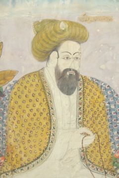 A LARGE 18TH-19TH CENTURY INDIAN DECCANI MINIATURE PAINTING, depicting Khawaja Qutub Eldeen, framed and glazed, image 30.5cm x 20cm.