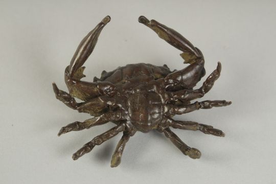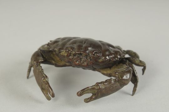 A JAPANESE BRONZE OKIMONO OF A CRAB, 7.5cm wide.