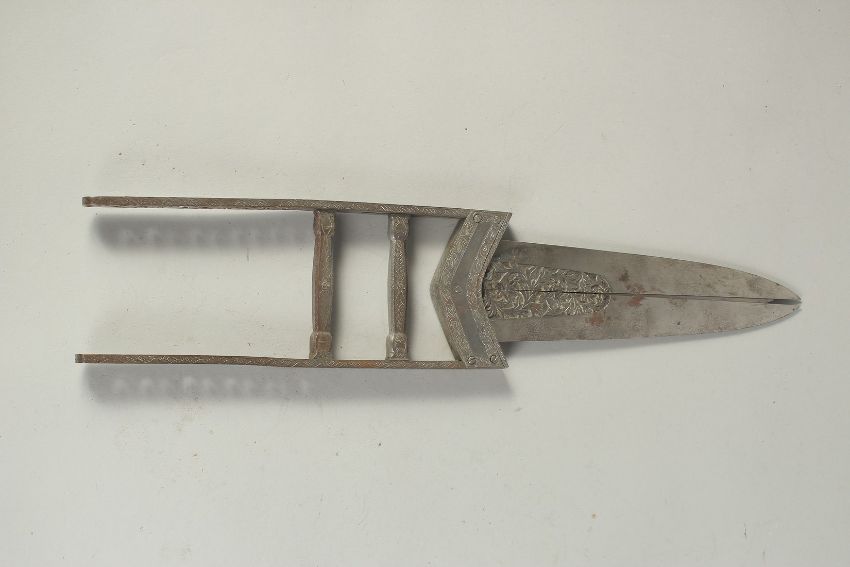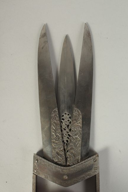 AN INDIAN THREE-BLADE KATAR, with openwork blade, 43cm long.