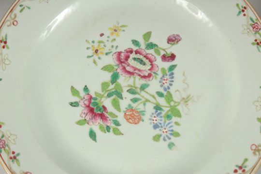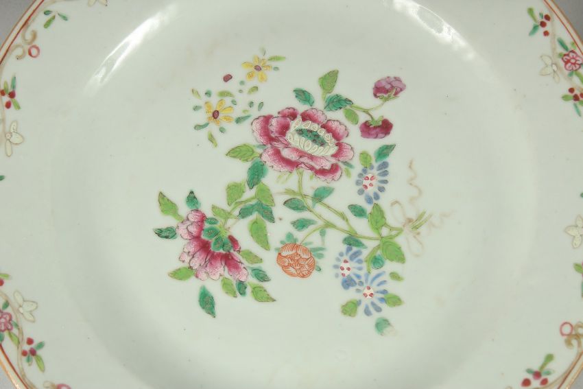 A PAIR OF 19TH CENTURY CHINESE FAMILLE ROSE PORCELAIN PLATES, 23cm diameter.