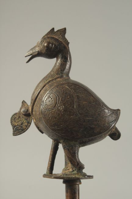 A 19TH CENTURY BRONZE BIRD FINIAL, 21cm high