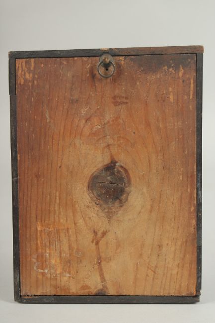 AN 18TH CENTURY HOLY LAND JERUSALEM MOTHER OF PEARL AND OLIVE WOOD ICON, 20.5cm x 15.5cm.