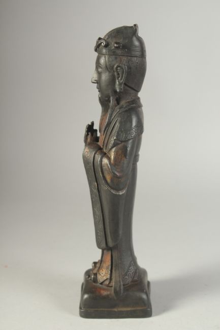 A FINE CHINESE BRONZE FIGURE, with traces of gilding, 29cm high.