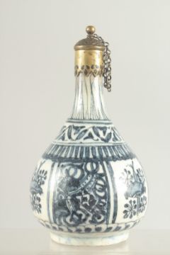AN ISLAMIC BLUE AND WHITE PORCELAIN BOTTLE VASE, for the Chinese market, 19cm high.
