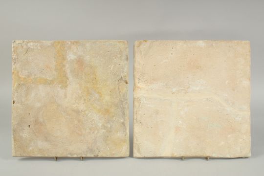 TWO EARLY 17TH CENTURY OTTOMAN IZNIK TILES, depicting a large lotus flower, (2).