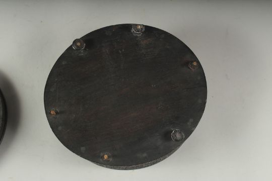 A FINE MID 19TH CENTURY ANGLO INDIAN CARVED EBONY BOX AND COVER, 19cm x 17cm.