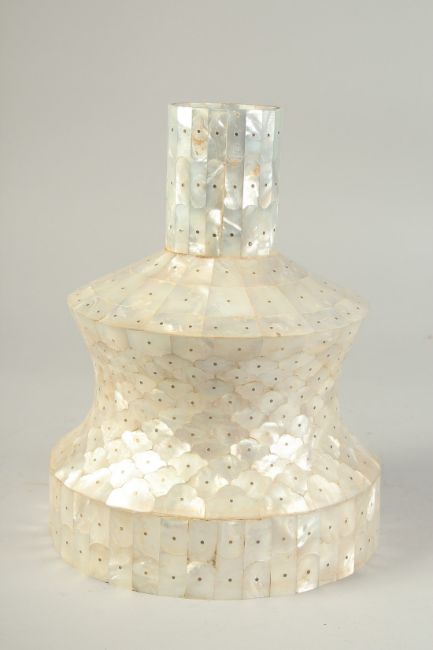 A TURKISH MOTHER OF PEARL CANDLE HOLDER, 26cm high.