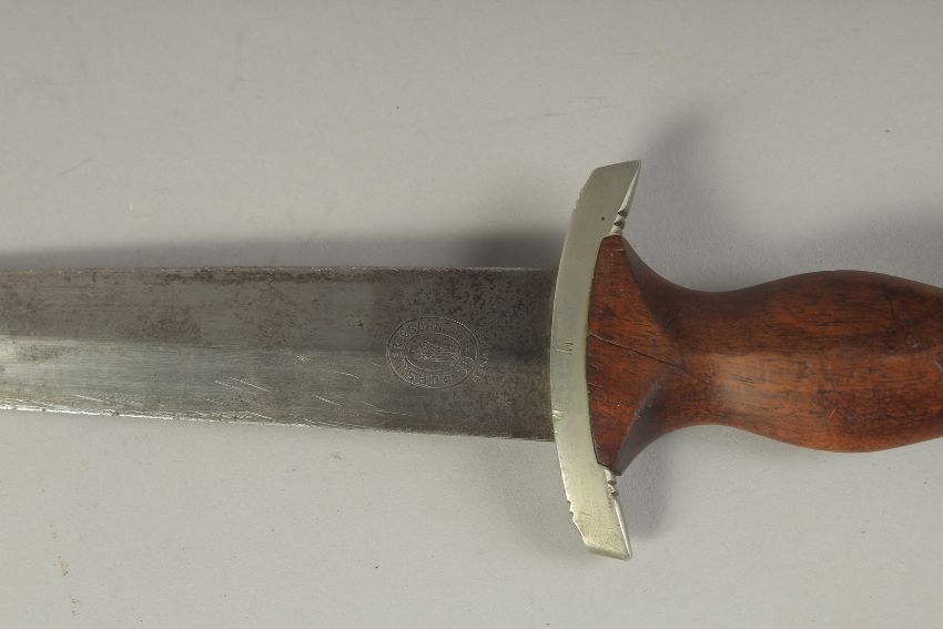 AN ORIGINAL THIRD REICH EARLY M1933 S A DAGGER by J. P. SOUER & SOHN, with wooden handle , metal sheath and metal chain.