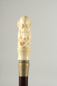 A CARVED BONE HANDLE WALKING STICK "RAT".