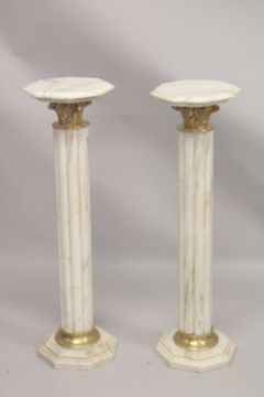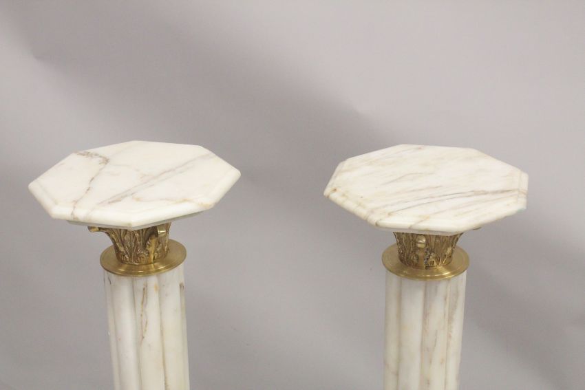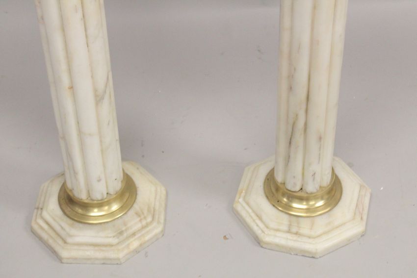 A GOOD PAIR OF WHITE MARBLE CLUSTER COLUMNS with octagonal tops and bases.