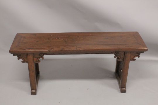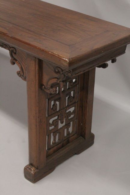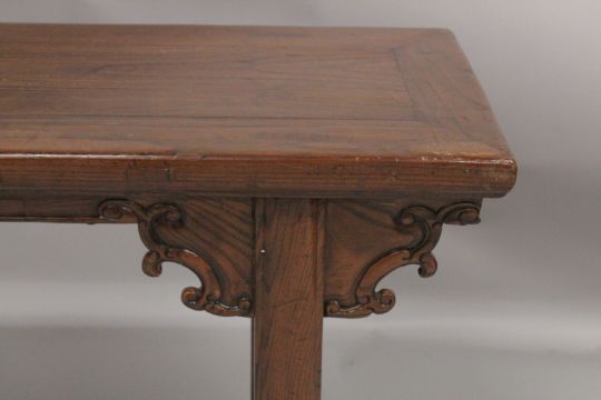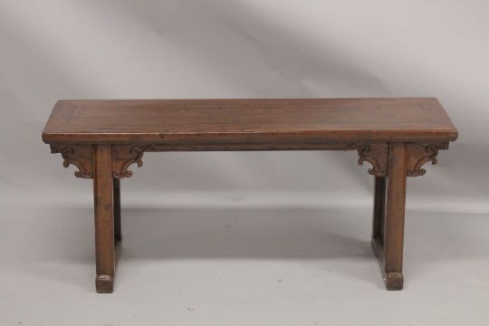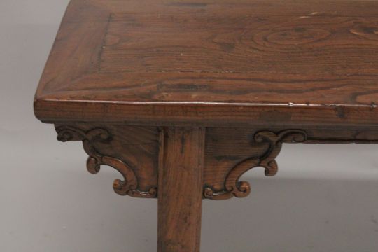 A LONG LOW CHINESE TABLE.