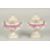 A SMALL PAIR OF SAMSON OF PARIS TWO HANDLED URNS AND COVERS with famille rose decoration and flowers on square bases.