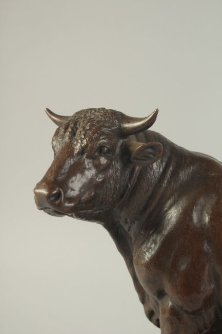A GOOD BRONZE FIGURE OF A BULL in majestic pose.