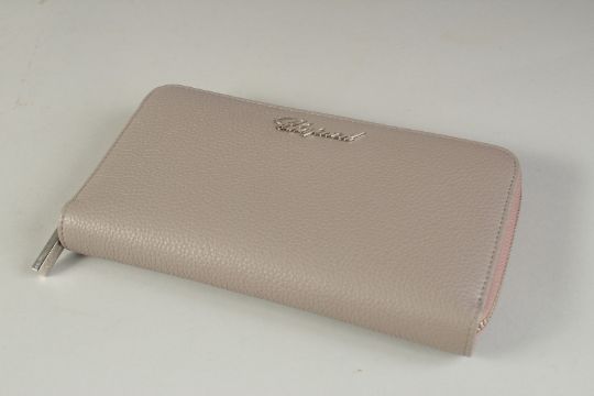 A NEW CHOPPARD GREY PURSE. 8ins long.