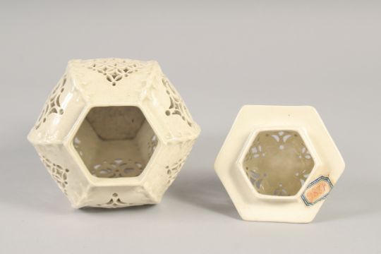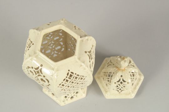 A LATE 19TH CENTURY LEEDS CREAMWARE VASE AND COVER, the body having alternating pierced panels