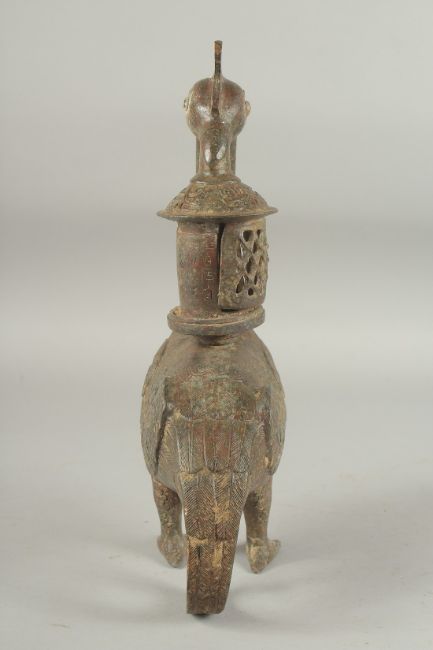 A CHINESE ARCHAIC BRONZE BIRD CENSOR.