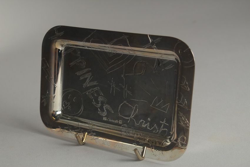 A CHRISTOPHLE ENGRAVED SILVER TRAY, dated 2019.