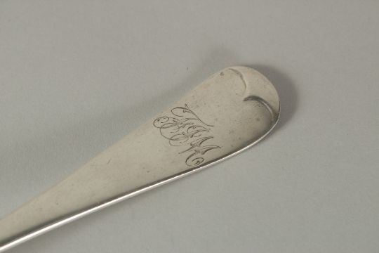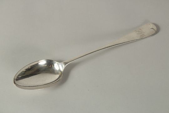 A LONG HANDLED SILVER SERVING SPOON.
