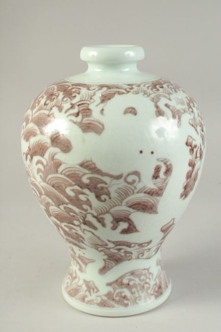 A CHINESE UNDERGLAZE RED AND WHITE PORCELAIN DRAGON MEIPING VASE, 29.5cm high.