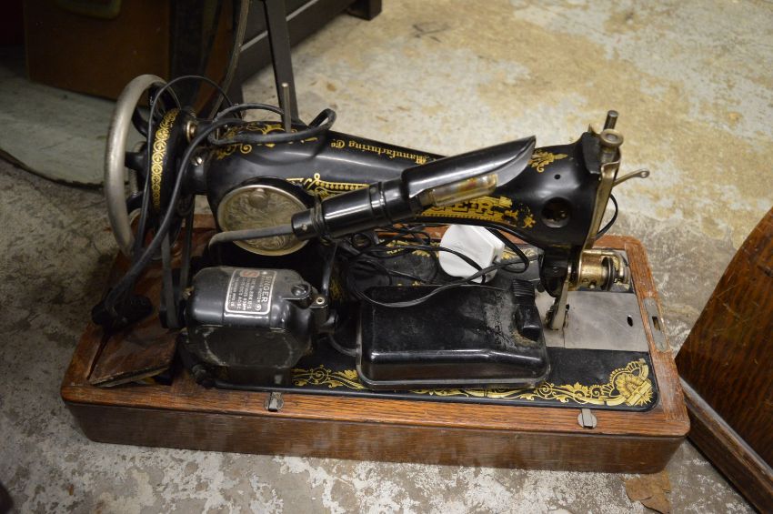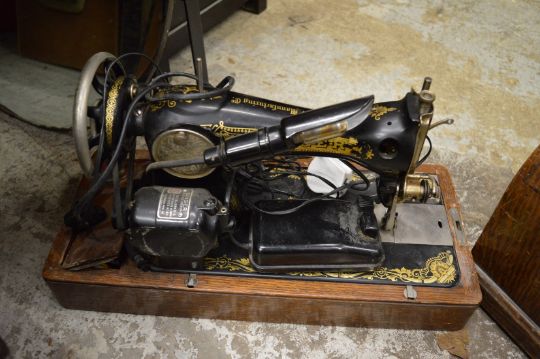 A Singer sewing machine and a mirror.