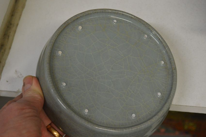 A Chinese celedon glazed brush washer.