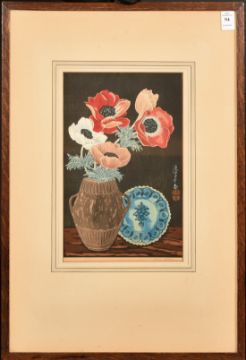 Mokuchu Urushibara (1888-1953), still life of flowers, woodcut in colours, signed in pencil, 12" x 7.75" (30 x 19.5cm).