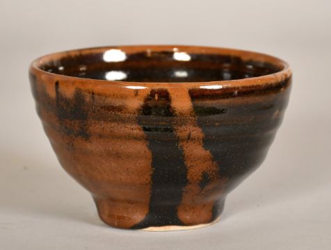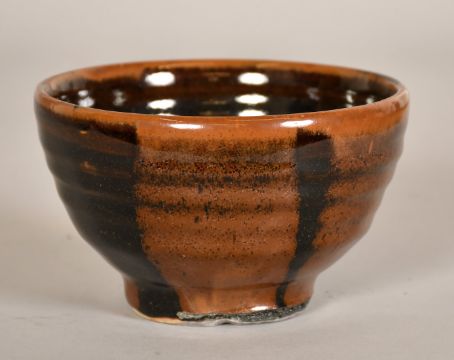 Don Morgan, a ribbed and glazed studio pottery bowl, 3" (7.25cm) high.