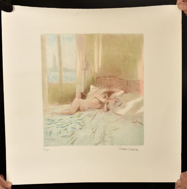 Bernard Dunstan, a print of a female nude reclining on a bed, signed in pencil and numbered 8 of 195, image size 13.5" x 13" (34 x 33cm), rolled.