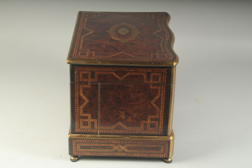 A SUPERB 19TH CENTURY FRENCH LIQUEUR SET by COIGNARD, PARIS, comprising four decanters and stoppers, eleven glasses in an inlaid case.
