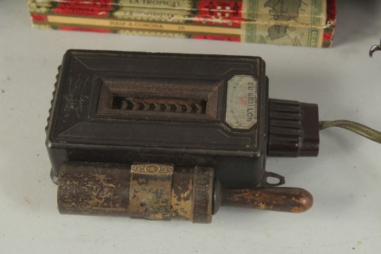 A BOXED LOT, CIGARS, EGG TIMERS ETC.