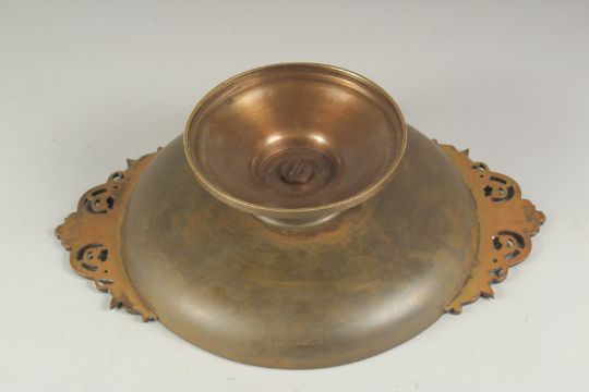 A GOOD 19TH CENTURY BRONZE CLASSICAL TWO HANDLED TAZZA.