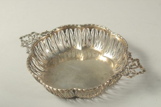 A PLAIN SHAPED SILVER TWO HANDLED DISH.