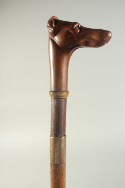 A GOOD 18TH CENTURY WOODEN CASED SWORD STICK with carved dog handle.